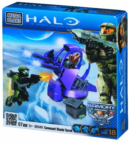 Establish your army, build and expand your units with the Halo Covenant Shade Turret by Mega Bloks! Operating a Covenant Shade Turret, a lone Special Ops Grunt stands guard on a key tactical position for the Covenant. Above the Grunt, an Air Assault Spartan has begun a sneak attack descent with a jetpack and frag grenades ready. The Spartan has one shot to take out the Grunt and secure the Shade - failure is not an option. See all Halo Covenant Shade TurretOverviewRelateItems